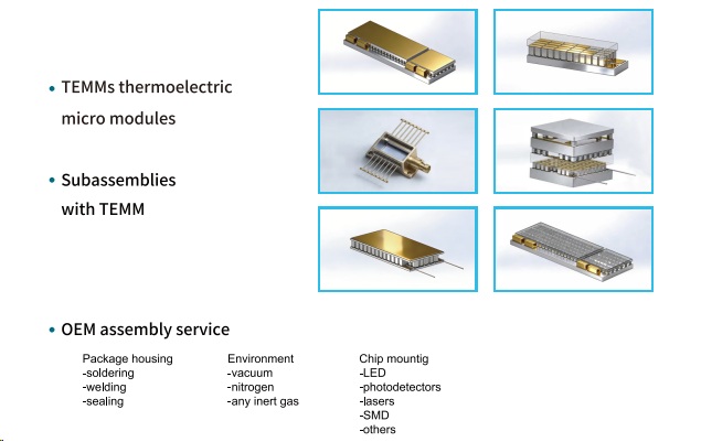 Electronic cooling based on thermoelectric modules is a critical technology for temperature management in optoelectronics widely used in TOSA Cans cooling subassemblies 10G, 25G, 50G, 100G, 400G, 800G, 1,6T.