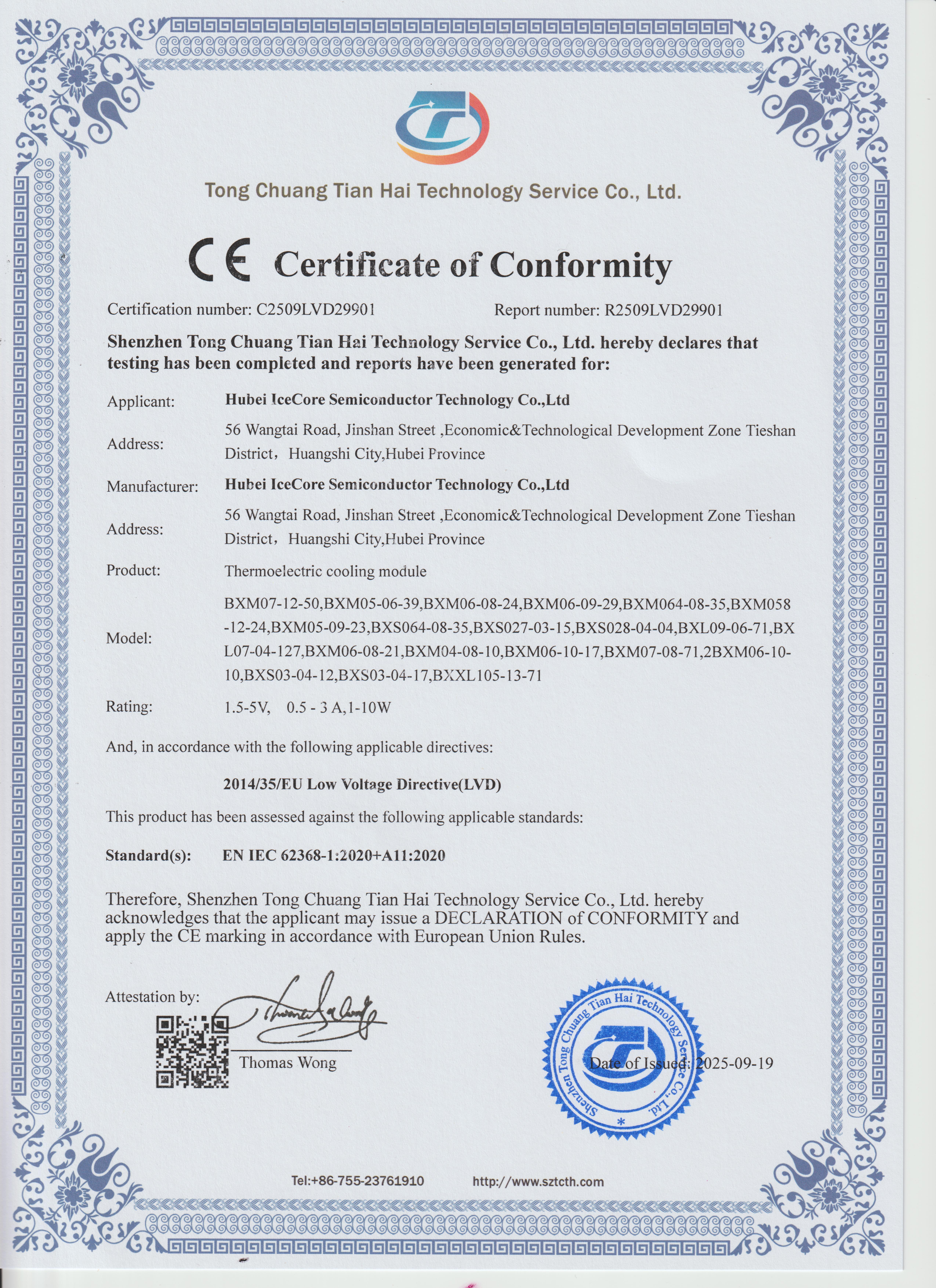 所有制造的TEC在每批生产后都通过了全面的监控和测试,包括:
